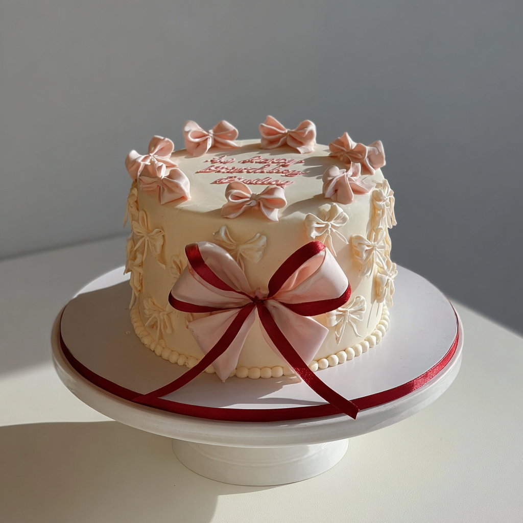 Eine zauberhafte Torte, die jeden Geburtstag zum Highlight macht – mit eleganten essbaren Schleifen als Hingucker.