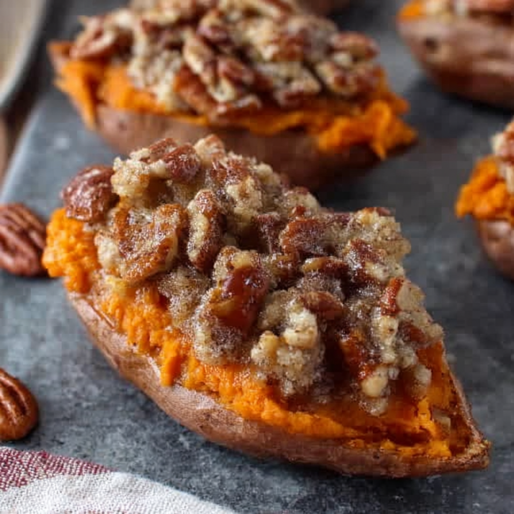Süßkartoffeln doppelt gebacken mit Pekannuss-Pie