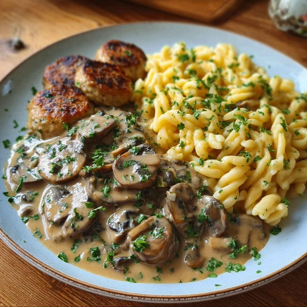 Medaillons in Champignon-Rahmsoße mit Spätzle