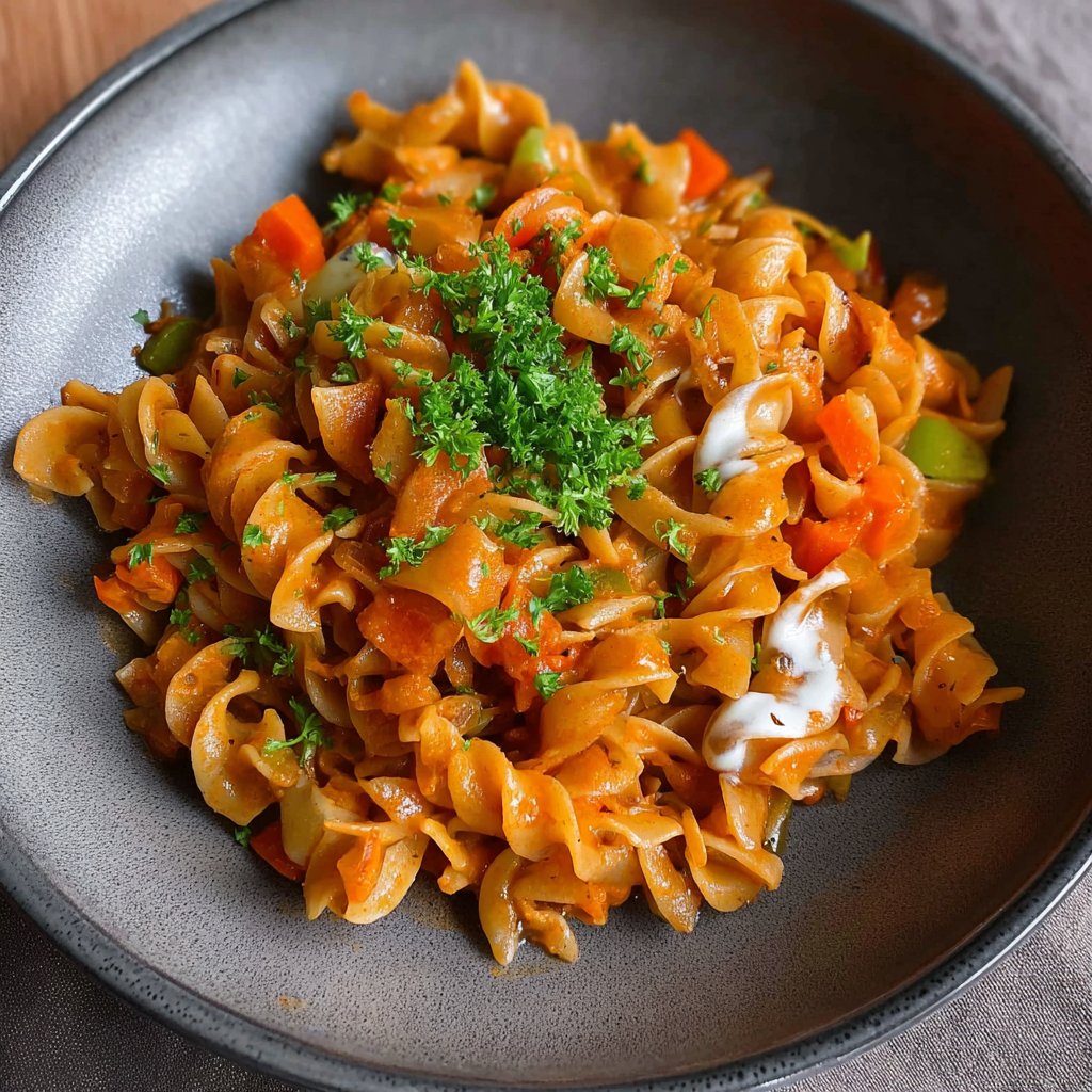Gesunde Nudeln mit Gemüse-Soße (einfaches Rezept)