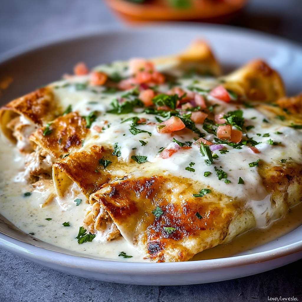 Chicken Enchiladas with Sour Cream White Sauce