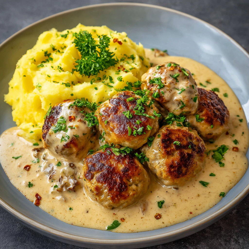 Hackbällchen in cremiger Sauce mit Kartoffelpüree