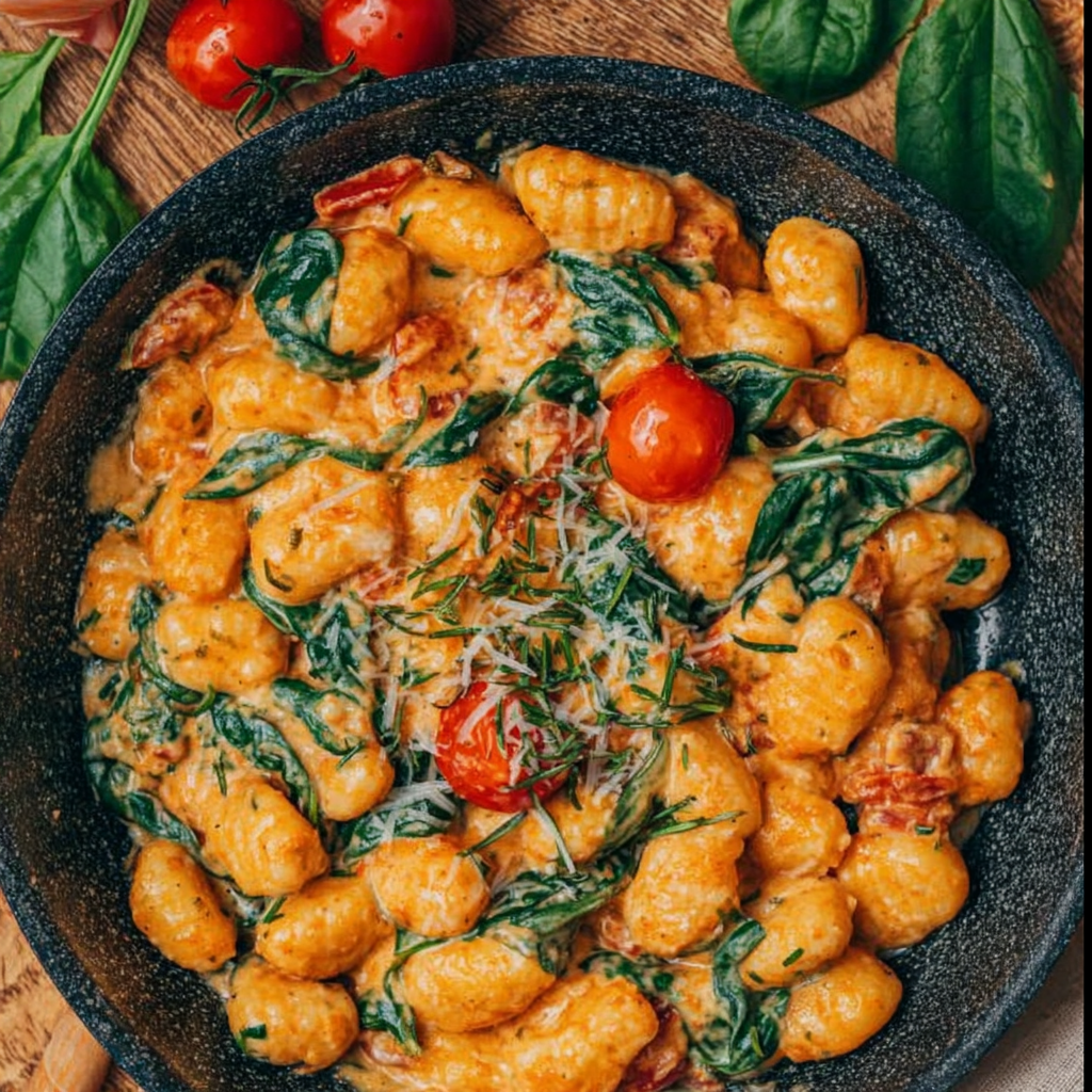 Schnelle Gnocchi-Pfanne mit Tomate & Spinat