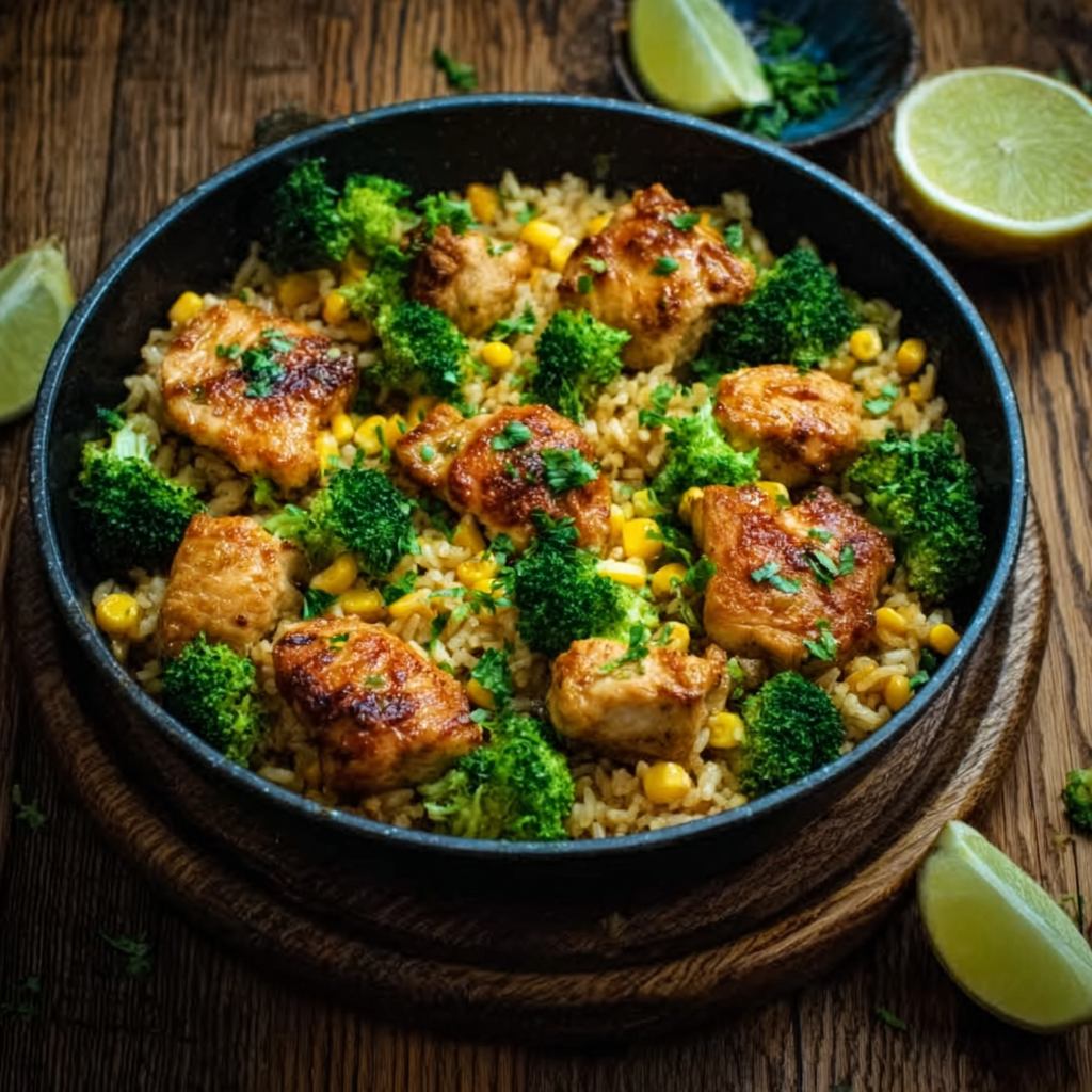 Hähnchen-Reis-Pfanne mit Brokkoli und Mais – Schnell, sättigend & gesund
