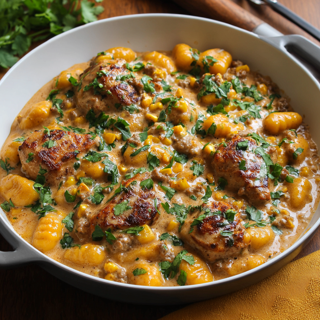 Diese cremige Gnocchi-Pfanne kombiniert zarten Butternut-Kürbis, herzhafte Wurst (z. B. italienische Bratwurst oder grobe Mettwurst) und fluffige Gnocchi zu einem wunderbar wärmenden Wohlfühlgericht – perfekt für den Herbst und Winter! Die cremige Soße ist reichhaltig, aber ausgewogen, mit einem Hauch Muskat, Salbei oder Rosmarin für ein aromatisches Finish.