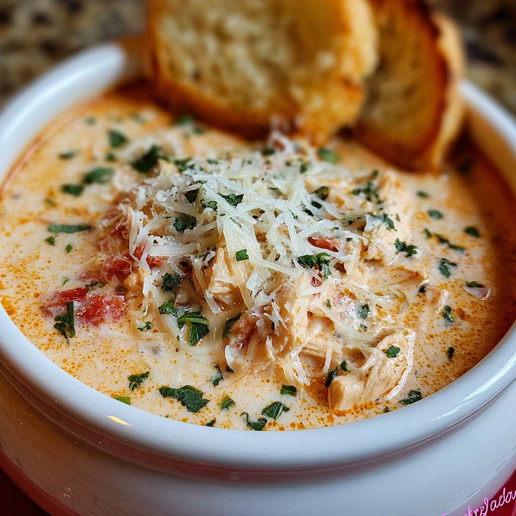 (Langsam gegarte Hähnchensuppe mit Parmesan, Tomaten und italienischem Flair – perfekt für den Slow Cooker!)