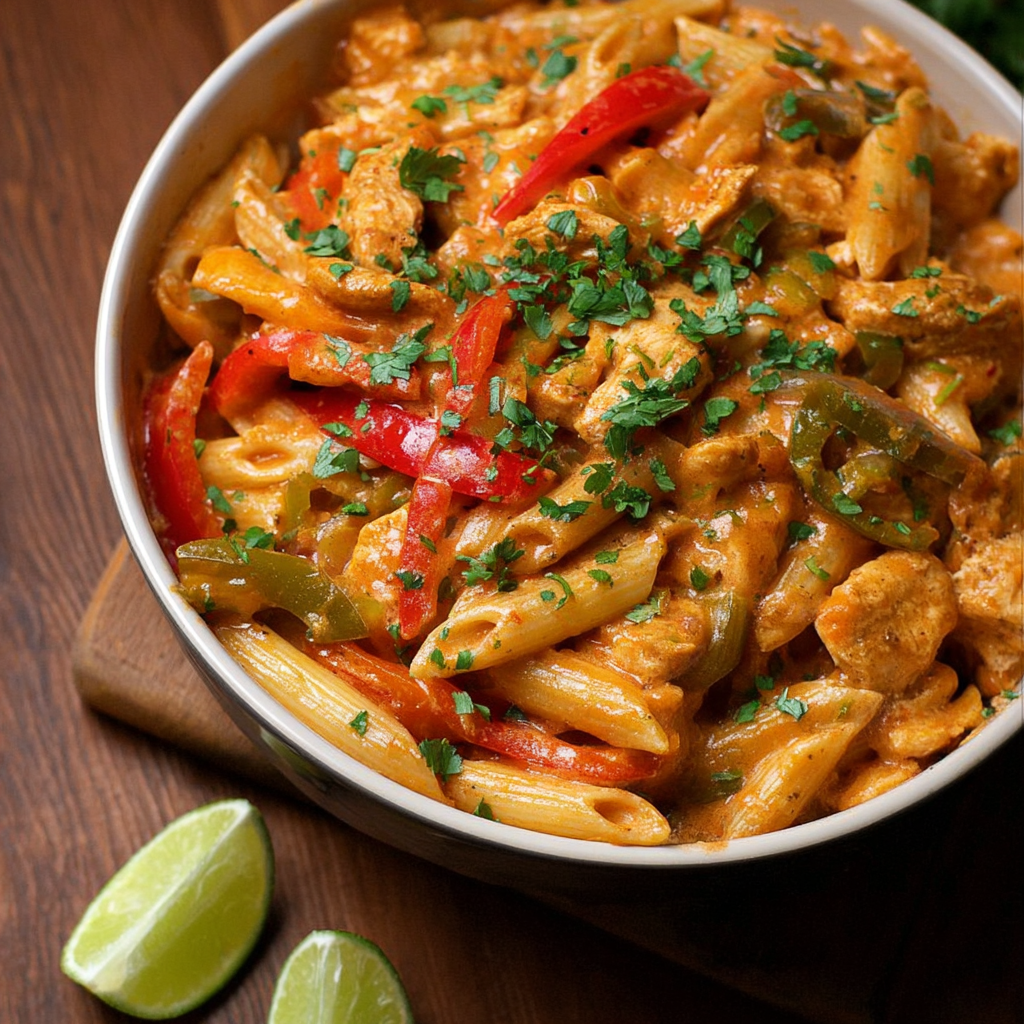 Wusstest du, dass One-Pot-Gerichte laut aktuellen Umfragen zu den beliebtesten Familienrezepten zählen, weil sie bis zu 40 % Zeit und Abwasch sparen? Genau deshalb ist diese One-Pot Chicken Fajita Pasta ein absoluter Favorit: cremig, würzig, sättigend und voller Tex-Mex-Aromen – und alles in nur einem Topf. Wenn du Pasta, Chicken und Fajitas liebst, ist dieses Rezept ein echtes Muss!