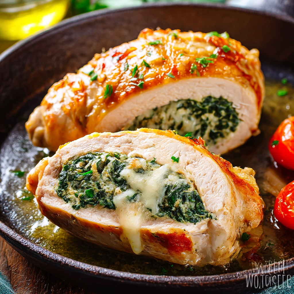 Gefülltes Hähnchen mit Spinat und Käse ist einfach, elegant und proteinreich – ideal für schnelle Abendessen oder festliche Menüs.