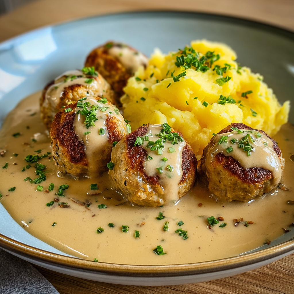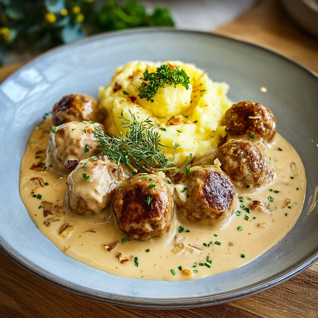 Wer liebt sie nicht – saftige Hackbällchen in cremiger Sauce, serviert mit fluffigem Kartoffelpüree? 😋