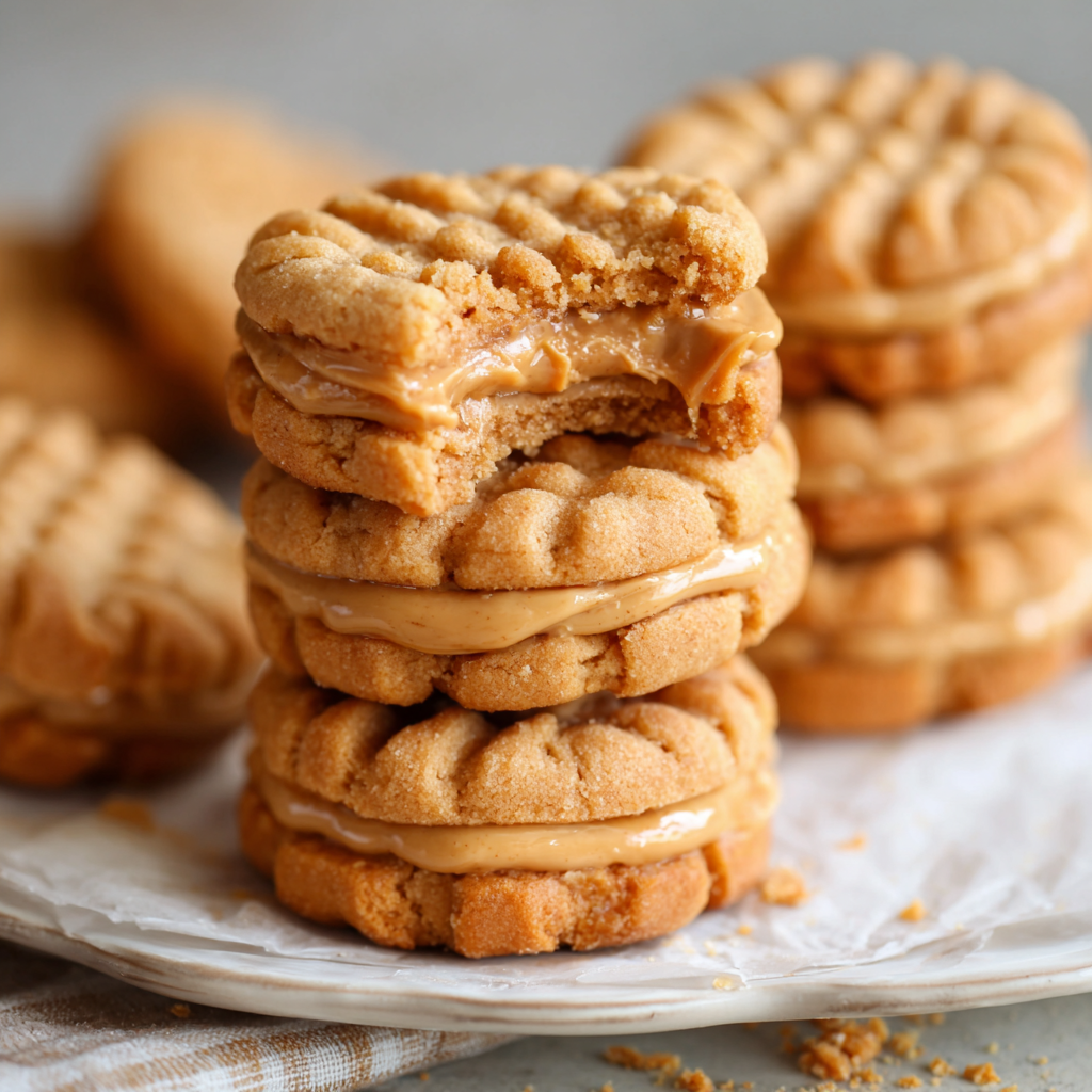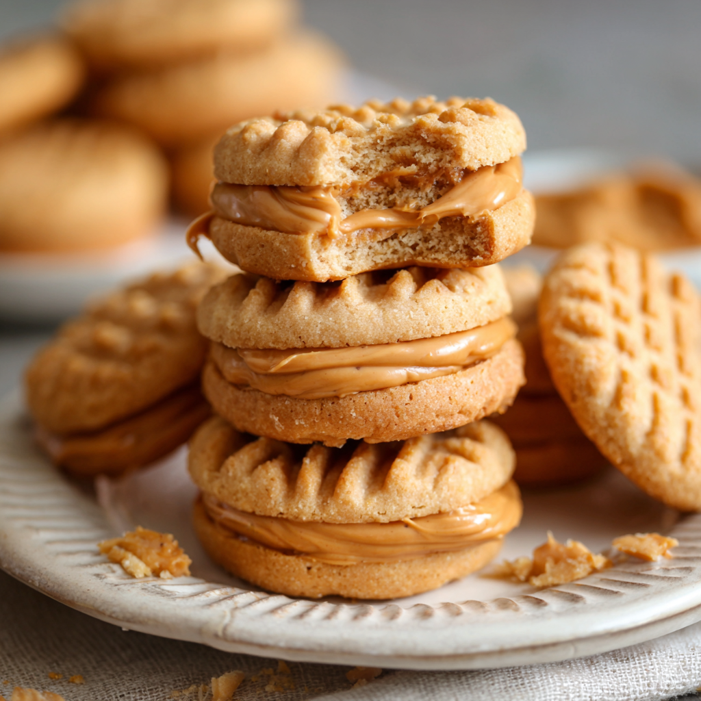 Sie bestehen aus zwei zart-knusprigen Erdnussbutterkeksen, die mit einer cremigen Peanut-Butter-Füllung zusammengesetzt werden. Ein Traum für Erdnussliebhaber – und dein neuer Favorit für Dessertplatten, Lunchboxen oder das schnelle Naschen zwischendurch.