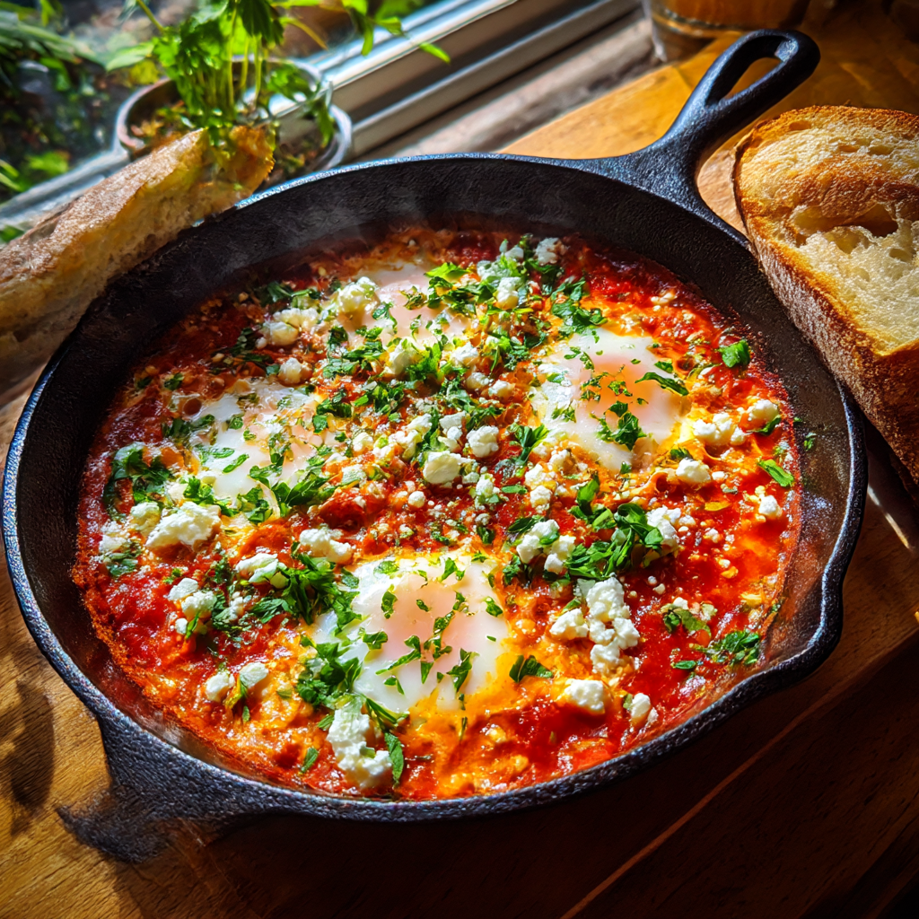 Dieses hausgemachte Shakshuka bringt Sonne, Würze und mediterranes Aroma direkt in deine Küche – ideal für Frühstück, Brunch oder ein schnelles Abendessen.
