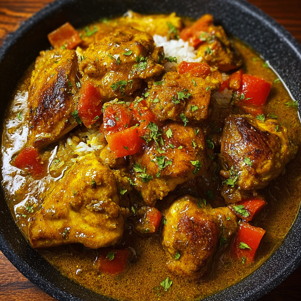 Das Jamaikanische Hähnchen-Curry ist würzig, cremig und schnell zubereitet, ideal für alle, die exotische Küche zu Hause genießen möchten.
