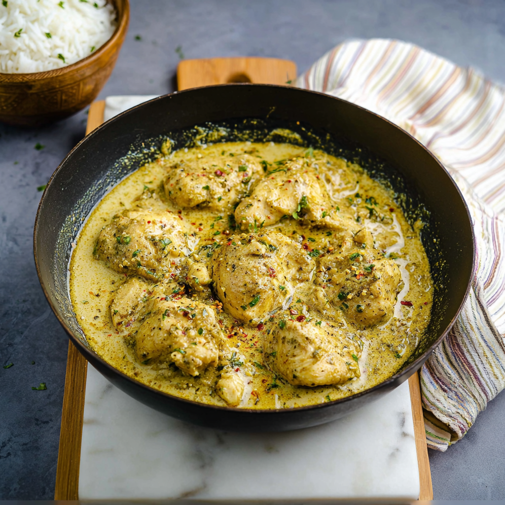 (NLP-Keywords: Malai Chicken, Malai Curry, indisches Hähnchencurry, cremiges Hähnchencurry, Butter Chicken Alternative, indische Küche, Hähnchen in Sahnesauce, mildes Curry, aromatisches Curry)