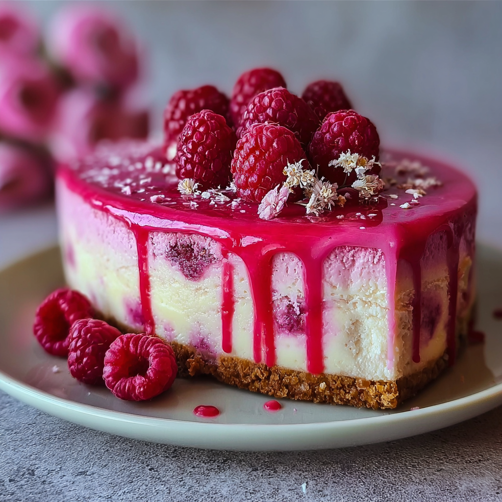 (NLP-Keywords: Pink Velvet Cheesecake, Himbeer-Cheesecake, Dessert Rezept, fruchtiger Cheesecake, rosa Kuchen, Himbeer Dessert, Backen mit Beeren, einfacher Cheesecake, samtiger Kuchen)
