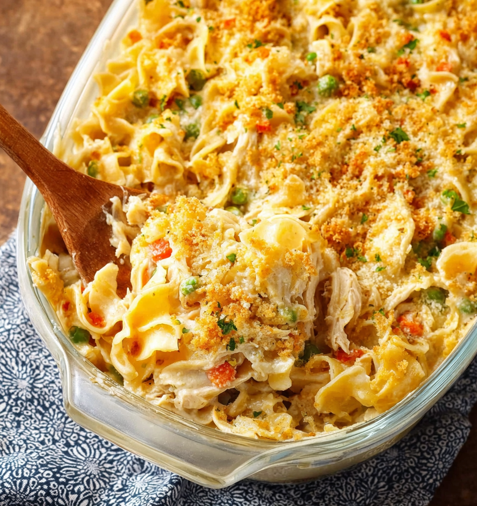 Cremig, wohltuend und herrlich nostalgisch — dieser Pioneer Woman Chicken Noodle Casserole vereint zartes Hähnchen, seidige Sauce, herzhafte Nudeln und ein buttrig-goldenes Topping in einem unvergesslichen Gericht. Probieren Sie ihn aus, hinterlassen Sie eine Bewertung und folgen Sie für weitere gemütliche Familienrezepte!