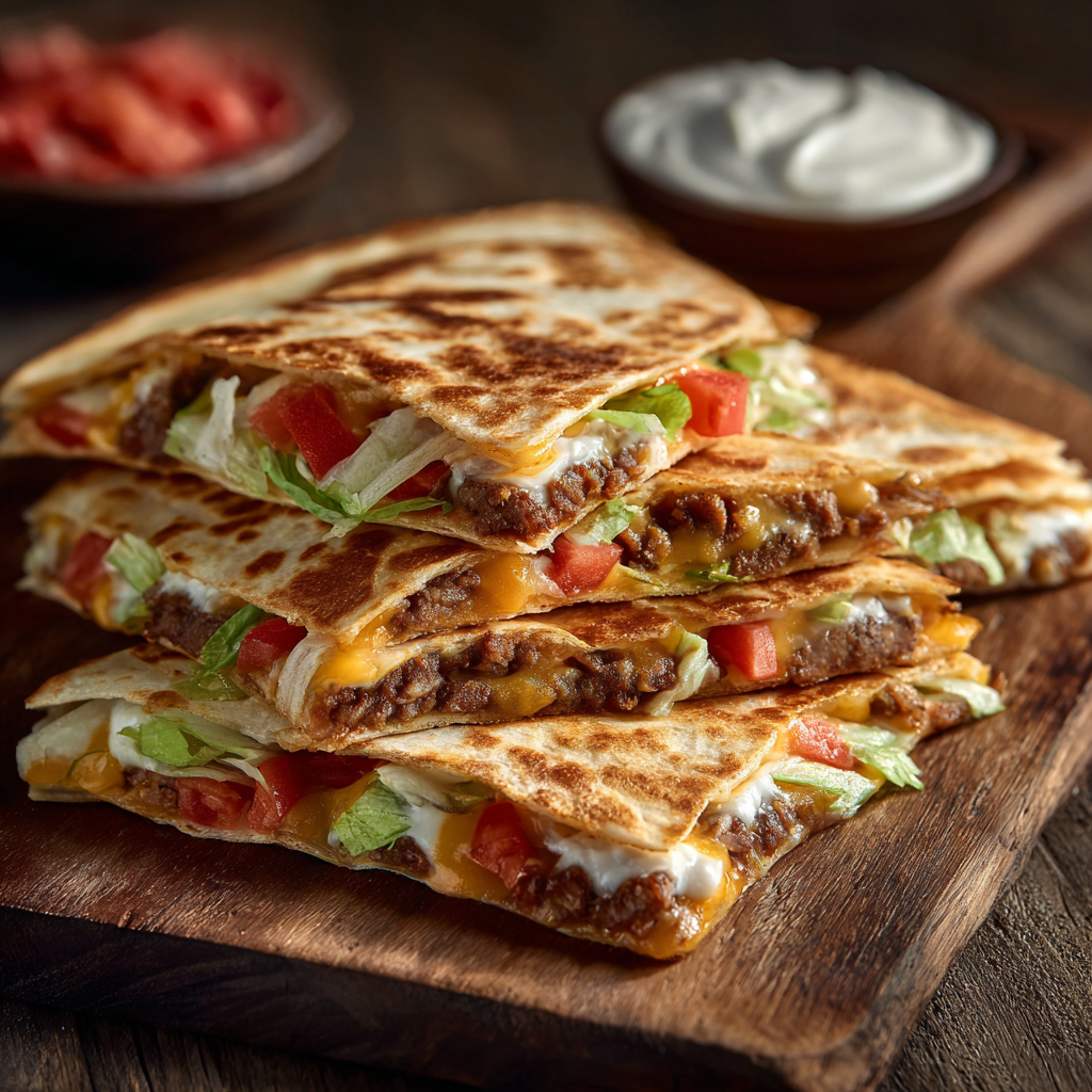 Das Ergebnis: pure Geschmacksexplosion! Diese Smashburger-Quesadillas kombinieren saftiges Rinderhack, geschmolzenen Käse, knusprige Tortillas und würzige Sauce zu einem perfekten Comfort-Food-Moment – in nur 20 Minuten zubereitet. Perfekt für Partys, schnelle Abendessen oder das nächste Wochenend-Highlight! 😍