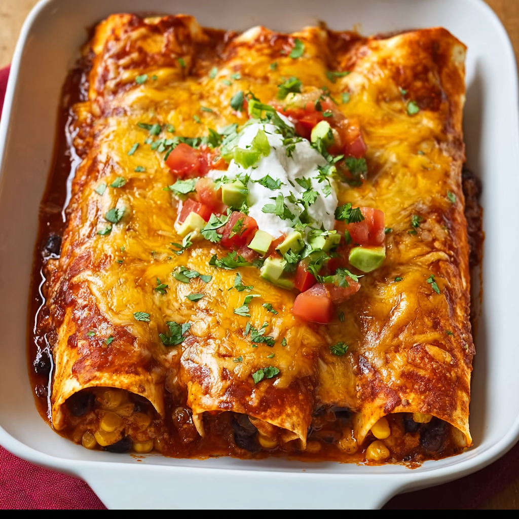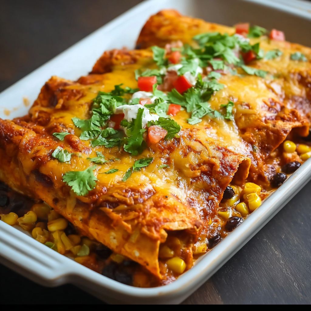 Süßkartoffel-, Mais- und Schwarze-Bohnen-Enchiladas sind ein gesundes, schnelles und aromatisches mexikanisches Gericht, das Familie und Freunde begeistert. Mit minimalem Aufwand entstehen pflanzliche, proteinreiche und vielseitige Enchiladas.