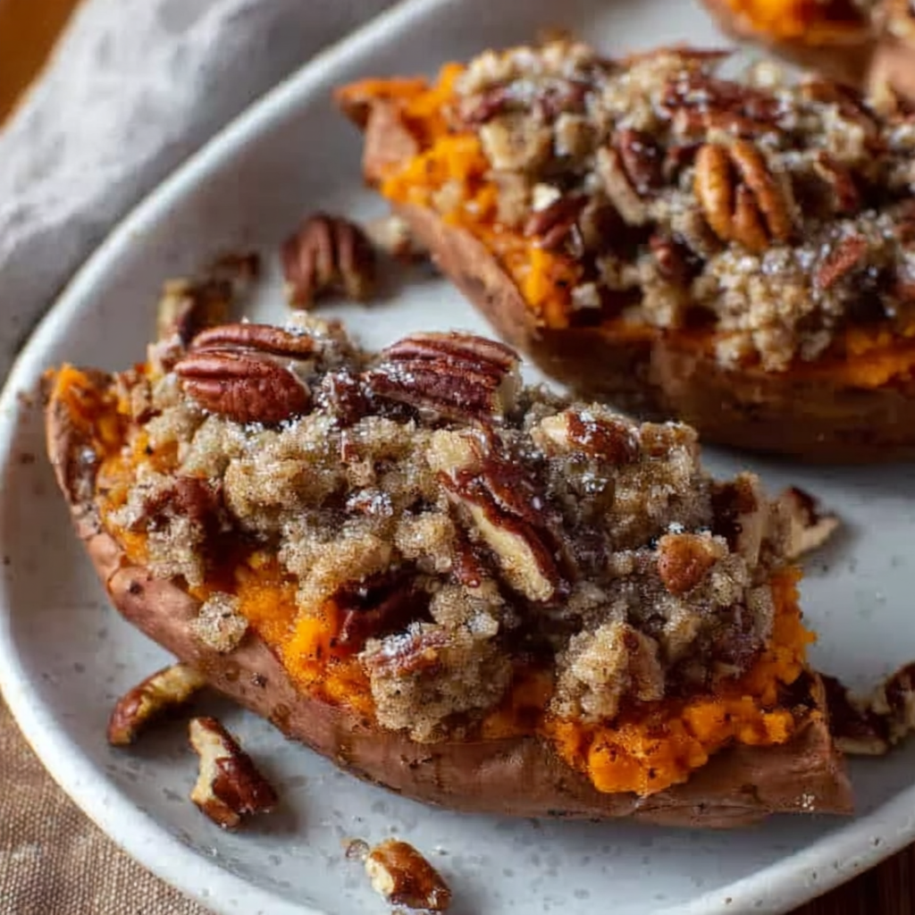 (NLP-Keywords: Süßkartoffel-Pie, Süßkartoffel-Dessert, Pekannuss-Dessert, doppelt gebackene Süßkartoffeln, Herbst-Dessert, Comfort Food, herbstliche Süßkartoffeln, Nusskuchen, Thanksgiving-Dessert)