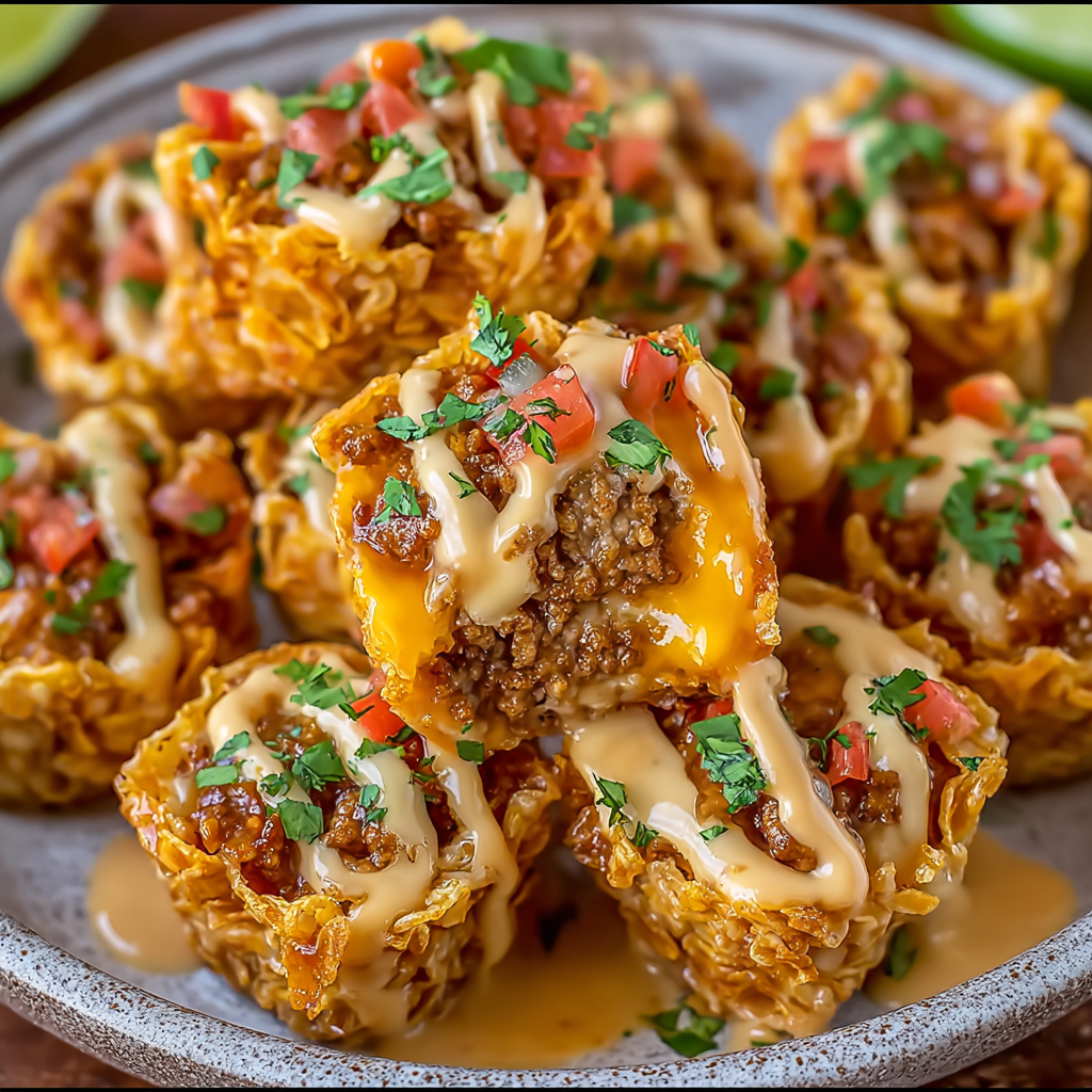 Dieses Rezept vereint das Beste aus zwei Welten – kräftig gewürztes Hackfleisch trifft auf cremigen Frischkäse und würzigen Käse, serviert in einer knusprigen Mini-Taco-Schale. Schnell gemacht, vielseitig wandelbar und der perfekte Snack für Partys, Filmabende oder gemütliche Familienrunden.