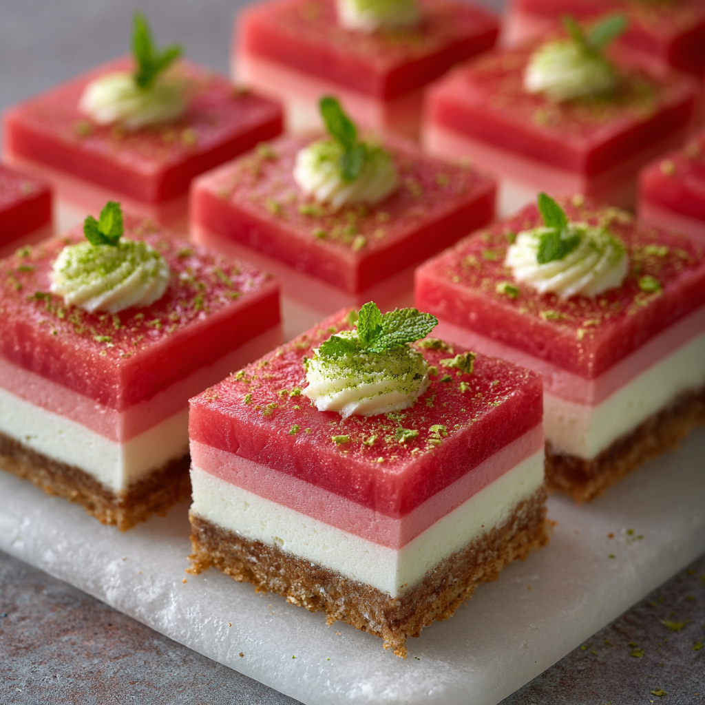 Bist du bereit für ein sommerliches Dessert, das sowohl optisch als auch geschmacklich begeistert? Unsere Wassermelonen-Gâteau-Würfel kombinieren saftige Wassermelone, zarte Biskuitböden und eine cremige Füllung zu einem frischen, farbenfrohen Dessert. Ideal für Gartenpartys, Picknicks oder einfach, um sich selbst an heißen Tagen zu verwöhnen. Dieses Rezept ist einfach, schnell und macht garantiert Eindruck.