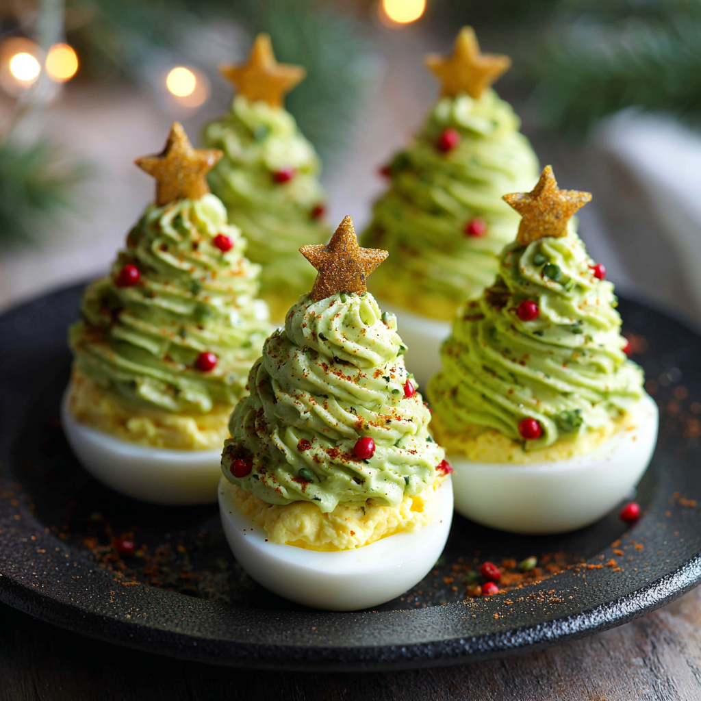 Die Weihnachtlichen gefüllten Eier in Tannenbaum-Optik sind ein kreativer, leckerer und überraschend einfacher Snack, der jedes Weihnachtsbuffet aufwertet.